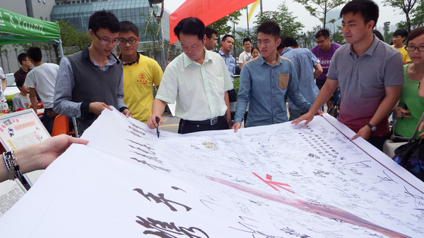 新都区城东派出所民警特意来到现场,并带来了毒品样品盒,给现场同学讲解毒品辨认方法,以直观方式提高学生的识毒能力。禁毒志愿者则向同学们发放禁毒宣传册,以及讲解毒品特别是合成毒品的有关知识、国家禁毒法律法规以及经营服务场所禁毒要求、寄递行业禁毒新规、易制毒化学品管理和出口等有关知识。同时,工作人员还邀请全校师生在主题幕布上签字,表明“珍爱生命,远离毒品”的决心。学校党委书记凌保东、副院长唐平、学生处处长刘萍来到现场观看了毒品样品,并参与签字活动,对活动的形式给予了高度评价。
