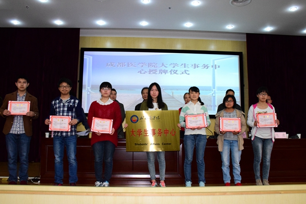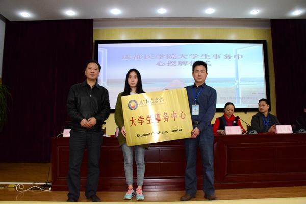 下午,成都医学院大学生事务中心授牌仪式在新都校区学术交流中心举行。副院长郝明、