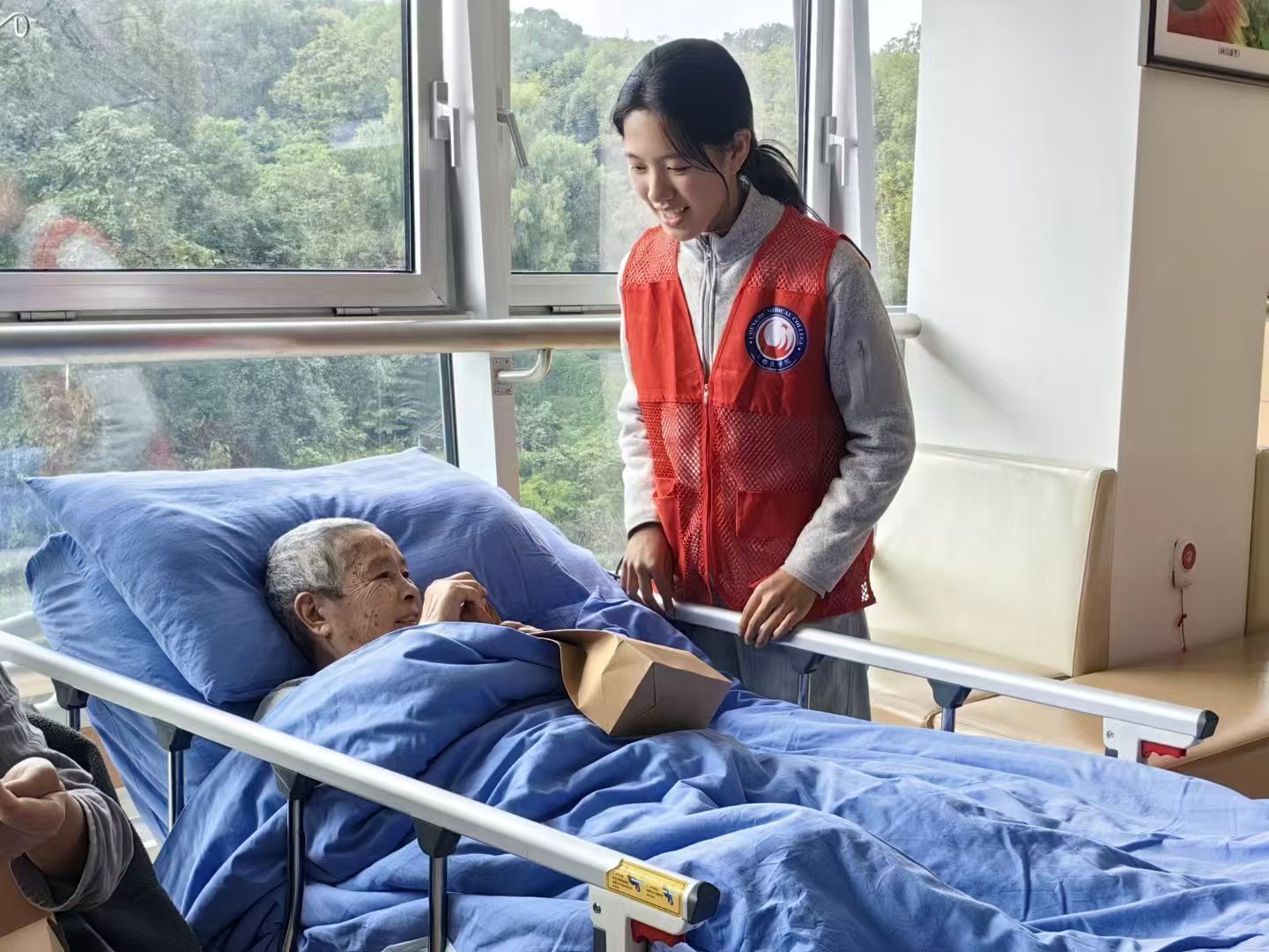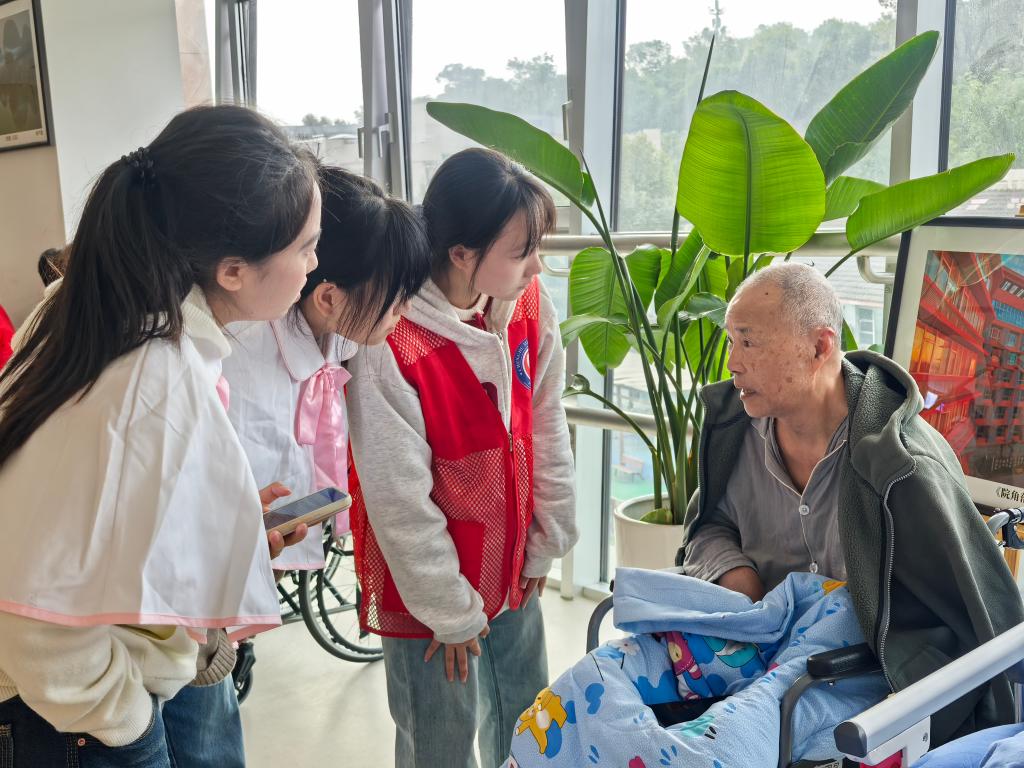 为大力弘扬中华民族敬老、爱老、助老的传统美德,践行“仁爱、奉献”的护理精神,10月25日,护理学院学生会组织30名志愿者,前往成都市第八人民医院,开展“情暖桑榆,医护相伴”重阳节主题慰问活动,为老人们送上了节日的诚挚祝福与温暖陪伴。