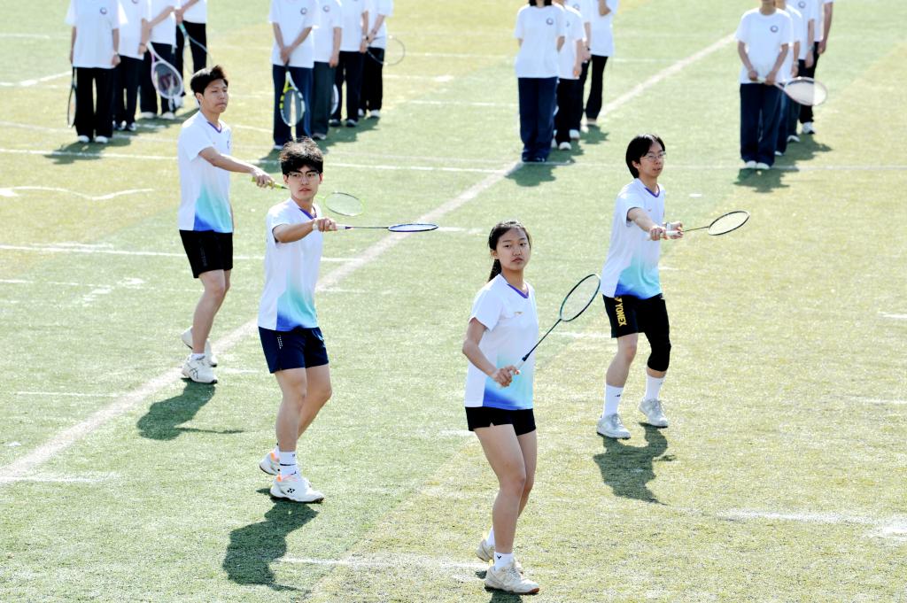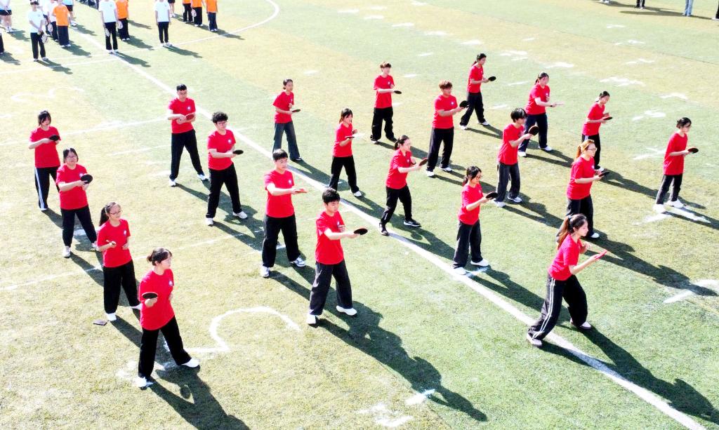 选修太极拳、初级拳、军体拳课程的95名同学列阵赛场,带来“锦韵武魂”八段锦表演,刚柔并济,尽显传统韵味;选修毽球、乒乓球、匹克球、羽毛球、网球课程的76名同学进行了“多维竞技场·能量矩阵”球类表演,活力四射尽现运动风采。一动一静间,传统与现代交融碰撞,定格成医人的青春神采。
