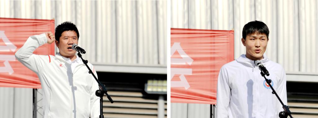 裁判员代表秦泽浩和运动员代表李凤鳞庄严宣誓,以严谨公正守护赛场秩序,以热血拼搏奔赴青春赛场,为这场盛会许下郑重承诺。